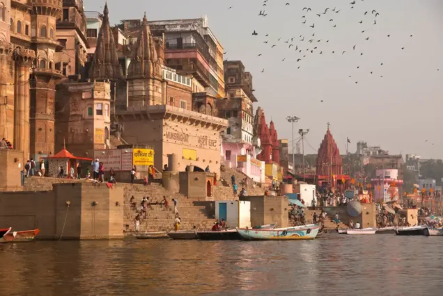 Begin in Varanasi, the world’s oldest living city, with a holy dip in the Ganga and the mesmerizing Ganga Aarti at Dashashwamedh Ghat.